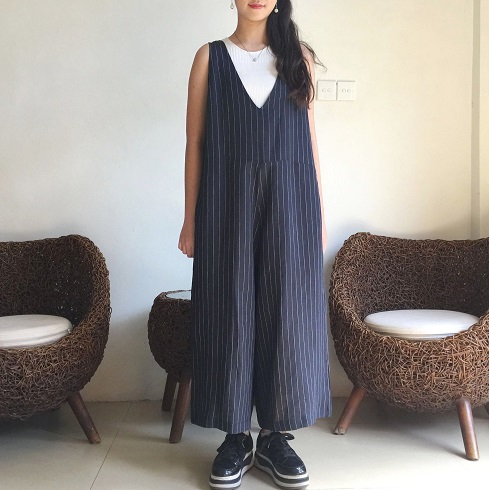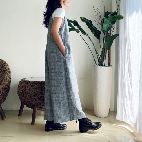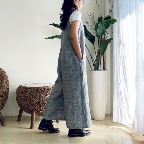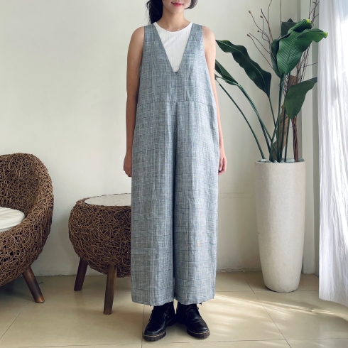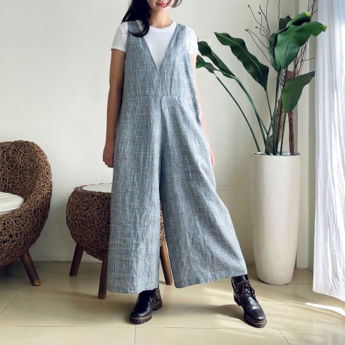 お家でも着心地が良く楽チン。 リネン素材でゆったり、ざっくり着られるサロペットパンツです♪ ![]() ![]() ![]() ![]() ![]() ![]() スッキリとした深めVカットの襟元、バックスタイルもVカットになっています。 ウエストちょうど、もしくは背の高さによってはややハイウエストの位置に替えがあります。 パンツのシルエットは裾に向かって緩やかに広がるAラインでゆったりとしたワイドパンツです。 股上も深めに取っていますので、ゆったりとルーズに着ていただく雰囲気になります。 お家でも楽チン、可愛いのでそのままお出かけ着としても良いかと思います♪ そんな雰囲気のサロペットパンツです。 画像のモデルはTシャツやノースリーブのインナーを合わせていますが、涼しくなったらタートルやハイネックのニットなどにも似合います。 生地感も季節感長く着ていただける素材なので、ブーツやスニーカーを合わせて長いシーズン楽しんでいただけたら幸いです。 インナーや小物によっても雰囲気が変わるので、いろいろなアレンジも楽しいパンツです♪ 是非1度お試しください。 モデルの身長:162cm |