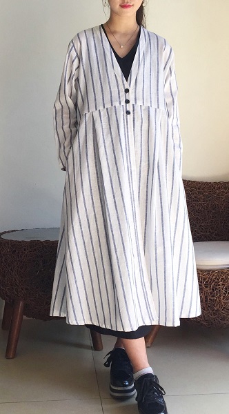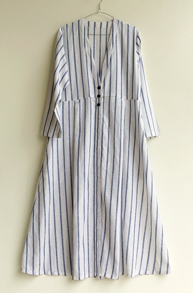 ホワイトベースに紺色のストライプ柄、とても爽やかな印象です。