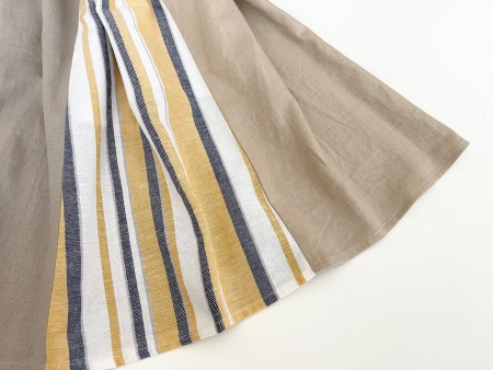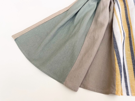 左から 淡いグリーン、ベージュ、イエローXブルーのストライプ、淡いベージュ の4色です。