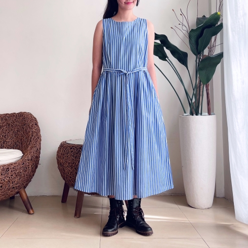 ブルーに白のストライプ柄です。