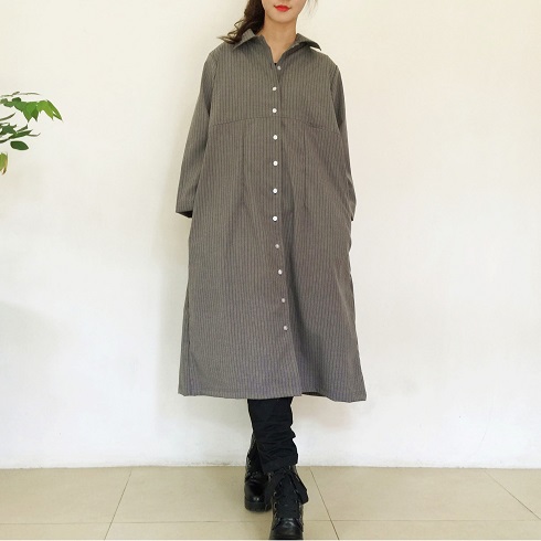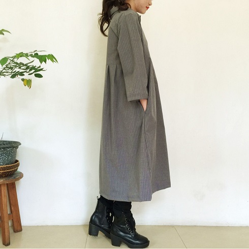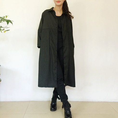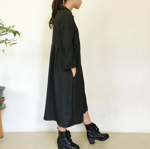季節の変わり目に大活躍な軽め羽織物♪ 上質なイタリアン産の素材で作製した 【ワンピースコート】です。 ![]() ![]() ![]() ![]() ![]() ![]() ![]() ![]() モデルの身長:161cm 開襟タイプの襟元に裾までの前ボタン、ゆったりとしたサイズ感です。 ボタンを開けてさっと羽織っても素敵なのでワンピースコートといった雰囲気になります。 胸下に切り替えがあり前身頃はすっきりとした形に、バックスタイルはプリーツを4本とって後ろ側がふんわりとややスカートが広がるようなシルエットになります。 厚手のコートになる前の薄手コートとして、トレンチコート的な感覚で着ていただけます。 素材は上質なイタリア産コットンを使用しています。 スーツに使用するような適度な張りと柔らかさ、皺になりにくい上質な綿です。 春や秋などの季節の変わり目に調度良い素材感のワンピースコートです。 是非お試しください。 ![]() |