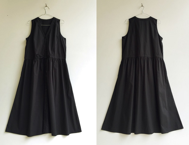着心地の良いコットン素材、ブラックカラーです。 ややシャリ感のあるしっかりめの綿素材で透けません。