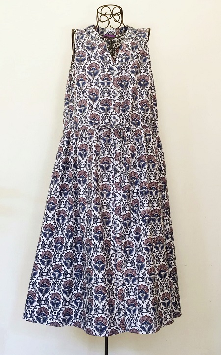 インド綿風な雰囲気のある柄粋、花模様の連続柄がとても素敵なワンピースです。