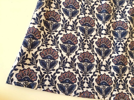 白ベースにブルーの紺とサーモンピンクの花モチーフ。