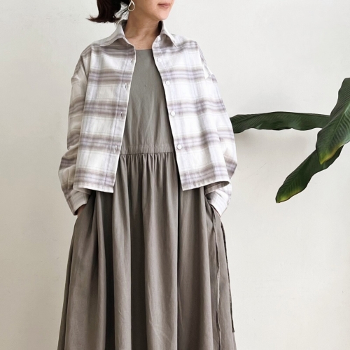 ■色 オフホワイト、淡いラベンダー、ベージュのチェック柄で優しい雰囲気の色柄です。