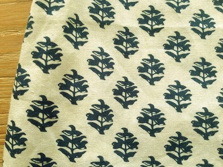 真っ白ではないクリームがかったオフホワイトベースに紺色の木のモチーフです。