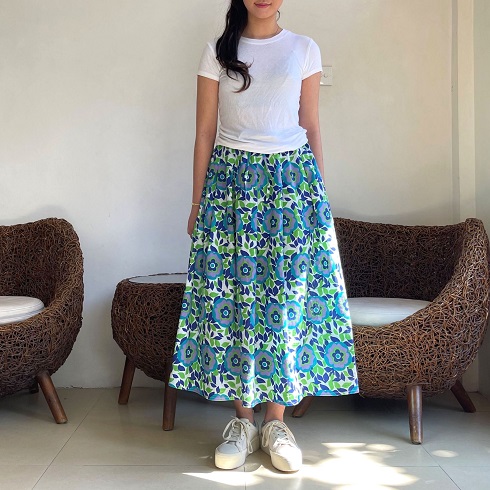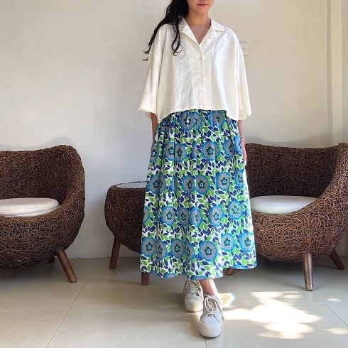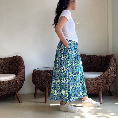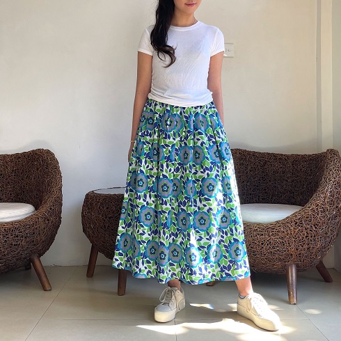 生地をたっぷりと使い、裾に向かってふんわりと広がるスカートです。