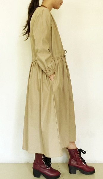 どんな季節にも合わせやすいベージュカラーです。サンプル画像ではボルドーカラーのブーツを合わせていますが