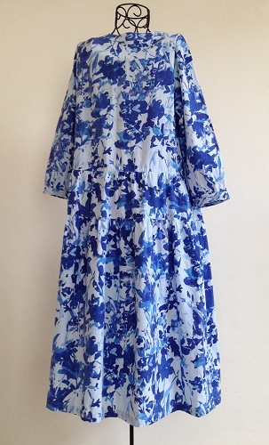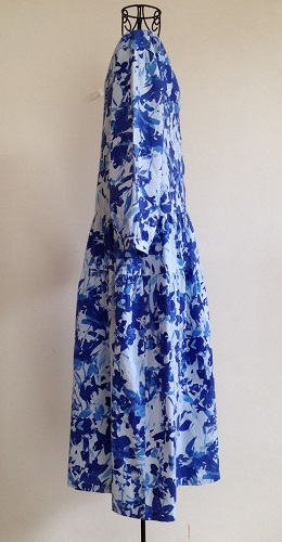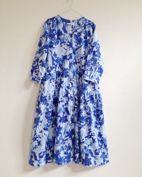 綺麗なブルーの花モチーフはまるで水彩画のようで、色のグラデーションがとても印象的なワンピースです♪