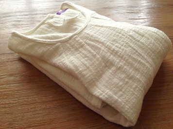 しっかりとした地厚のガーゼのようなコットン素材です。畳んでみるとこのくらいの厚さになります。