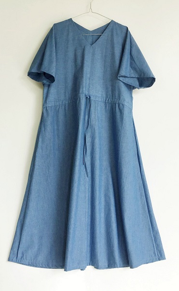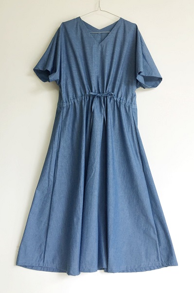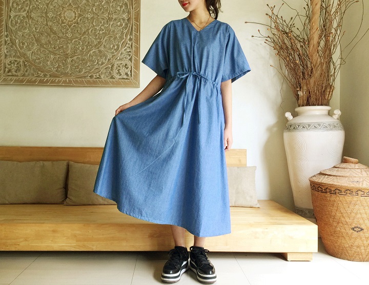 ブルーデニムの柔らかなタイプ、ソフトデニムです。生地はとても柔らかく、でもしっかりとしている綿で透け感なく1枚で着ていただけます。